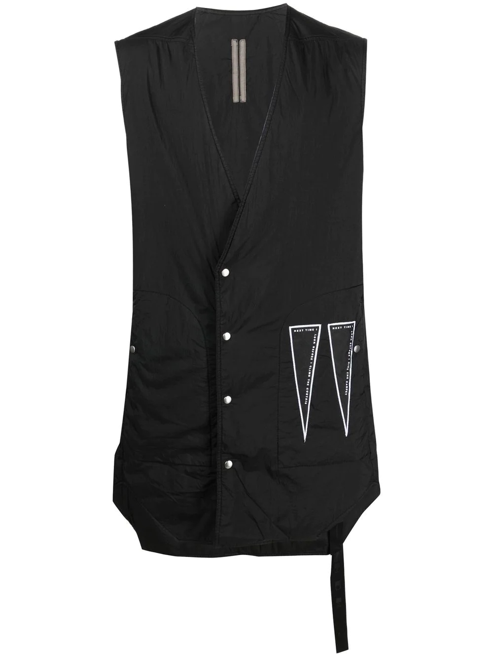logo-print sleeveless coat black V-neck sleeveless front press-stud fastening sleeveless two side slit pockets Made in Italy Composition Lining: Polyester 100% Outer: Polyamide 100% SIZE & FIT Model measurements Height 6 ft 2 in(1.87 m) Bust/Chest 38.18 in(97 cm) Hips 36.61 in(93 cm) Waist 29.13 in(74 cm) FittingInformation This piece fits true to size. We recommend you get your regular size Cut for a loose fit Made with a mid-weight non-stretch fabric Washing instructions Hand Wash