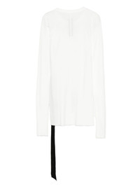 long-sleeve tie-detail top Highlights - White - Long sleeves - Round neck - Ribbed fabric - Asymmetrical hem - Black tie detail Made in Italy Composition Cotton 100% Washing instructions Hand Wash