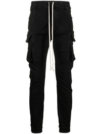 Mastodon drawstring slim-fit trousers Highlights - Black - Cotton blend - Tonal stitching - Slim cut - Tapered leg - Elasticated drawstring waistband - Two side inset pockets - Two side cargo pockets - Two rear flap pockets Made in Italy Composition Outer: Cotton 91%, Elastomultiester 6%, Rubber 3% Lining: Cotton 100% SIZE & FIT Model measurements Height 6 ft 2 in(1.87 m) Bust/Chest 36.41 in(92.5 cm) Hips 37 in(94 cm) Waist 29.52 in(75 cm) FittingInformation Designed for a slim fit, offering a comfortable fit that sits just away from the leg The elasticated waist allows for a comfortable fit Made from a midweight stretch fabric, this piece offers elasticity and flexibility when worn This piece fits true to size – take your usual size Washing instructions Hand Wash