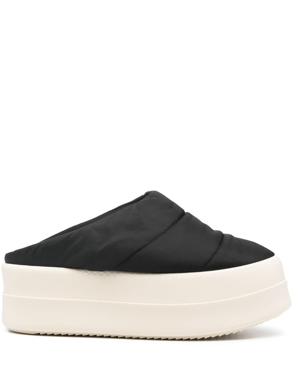 quilted platform slippers Highlights - Black - Quilted upper - Platform sole - Slip-on style - Round toe - Branded insole Imported Composition Lining: Nylon 100%, Polyurethane 70%, Polyester 30% Sole: Rubber 100% Outer: Recycled Nylon 100%