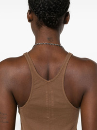 racerback organic cotton tank top Highlights - Brown - Organic cotton - Jersey texture - Strap detailing - Seam detailing - Round neck - Sleeveless - Racerback - Raw-cut hem Made in Italy Composition Organic Cotton 100% SIZE & FIT Model measurements Height 5 ft 10 in(1.78 m) Bust/Chest 31.49 in(80 cm) Hips 37 in(94 cm) Waist 23.62 in(60 cm) Measurement BUST 24.4 in(62 cm) LENGTH 24.01 in(61 cm) FittingInformation Designed for a close fit throughout Made from a midweight non-stretch fabric, this piece offers minimal elasticity when worn This piece fits true to size – take your usual size