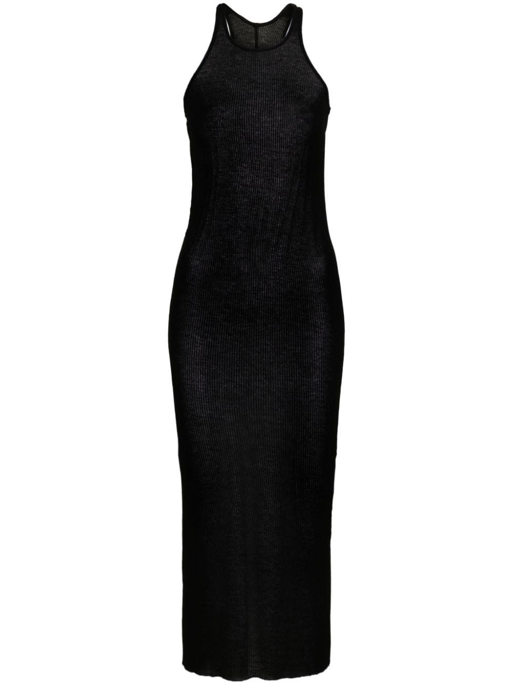 ribbed tank midi dress Highlights - Black - Jersey texture - Fine ribbed - Semi-sheer construction - Scoop neck - Sleeveless - Bodycon design - Straight hem - Mid-length Made in Italy Composition Viscose 88%, Silk 12% SIZE & FIT Model measurements Height 5 ft 10 in(1.78 m) Bust/Chest 31.49 in(80 cm) Hips 37 in(94 cm) Waist 23.62 in(60 cm) FittingInformation Designed for a close fit throughout Made from a lightweight non-stretch fabric, this piece offers minimal elasticity when worn This piece fits true to size – take your usual size