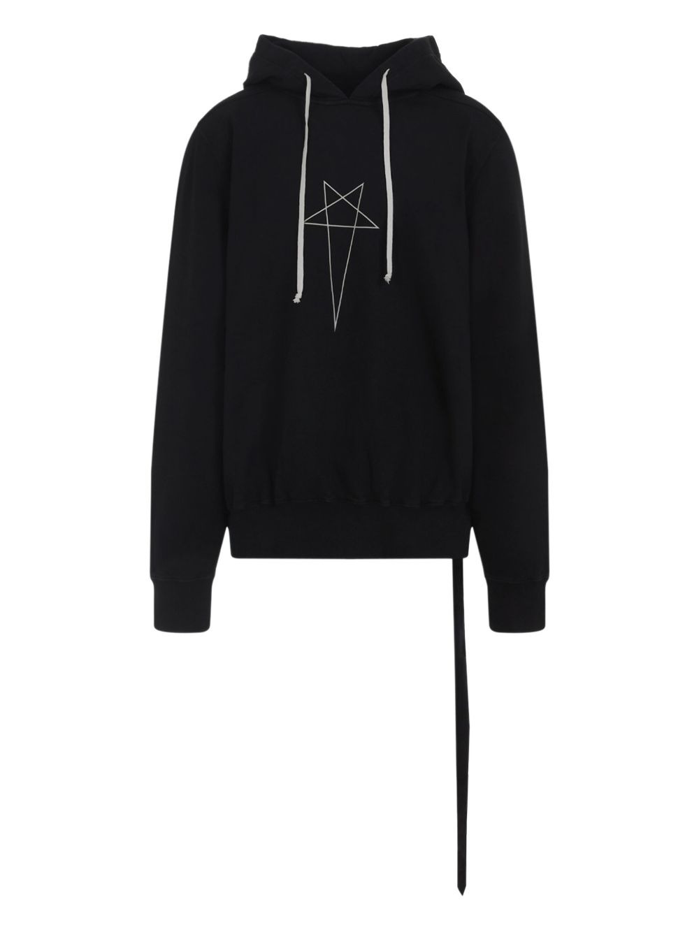 star-embroidered drawstring hoodie Highlights - Black - Cotton - Drawstring hood - Star embroidery - Dropped shoulder - Asymmetrical hemline Imported Composition Cotton 100% Washing instructions Read Manufacturer Guidelines