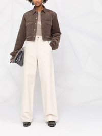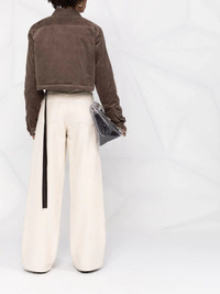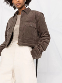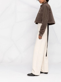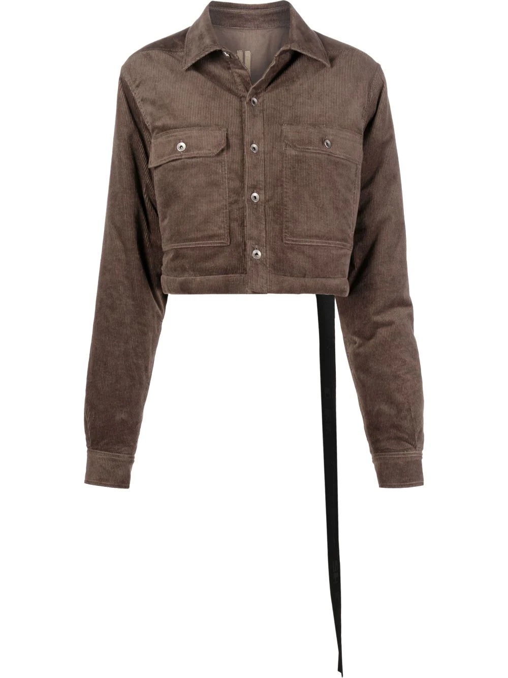 corduroy cropped jacket Rick Owens incorporates its signature hanging tassel into this jacket for SS22. This detail adds an edgy slant the designer has become known for. Highlights - Dust - Stretch cotton - Classic collar - Front flap pockets - Front button fastening - Cropped - Long sleeves - Tassel detail Made in Italy Composition Outer: Cotton 97%, Elastane 3% Lining: Cotton 100% SIZE & FIT Model measurements Height 5 ft 11 in(1.8 m) Bust/Chest 31.49 in(80 cm) Hips 35.82 in(91 cm) Waist 24.8 in(63 cm) FittingInformation This piece fits true to size. We recommend you get your regular size Cut for a loose fit Made with a mid-weight fabric Washing instructions Dry Clean Only