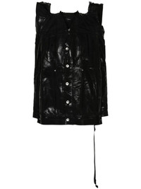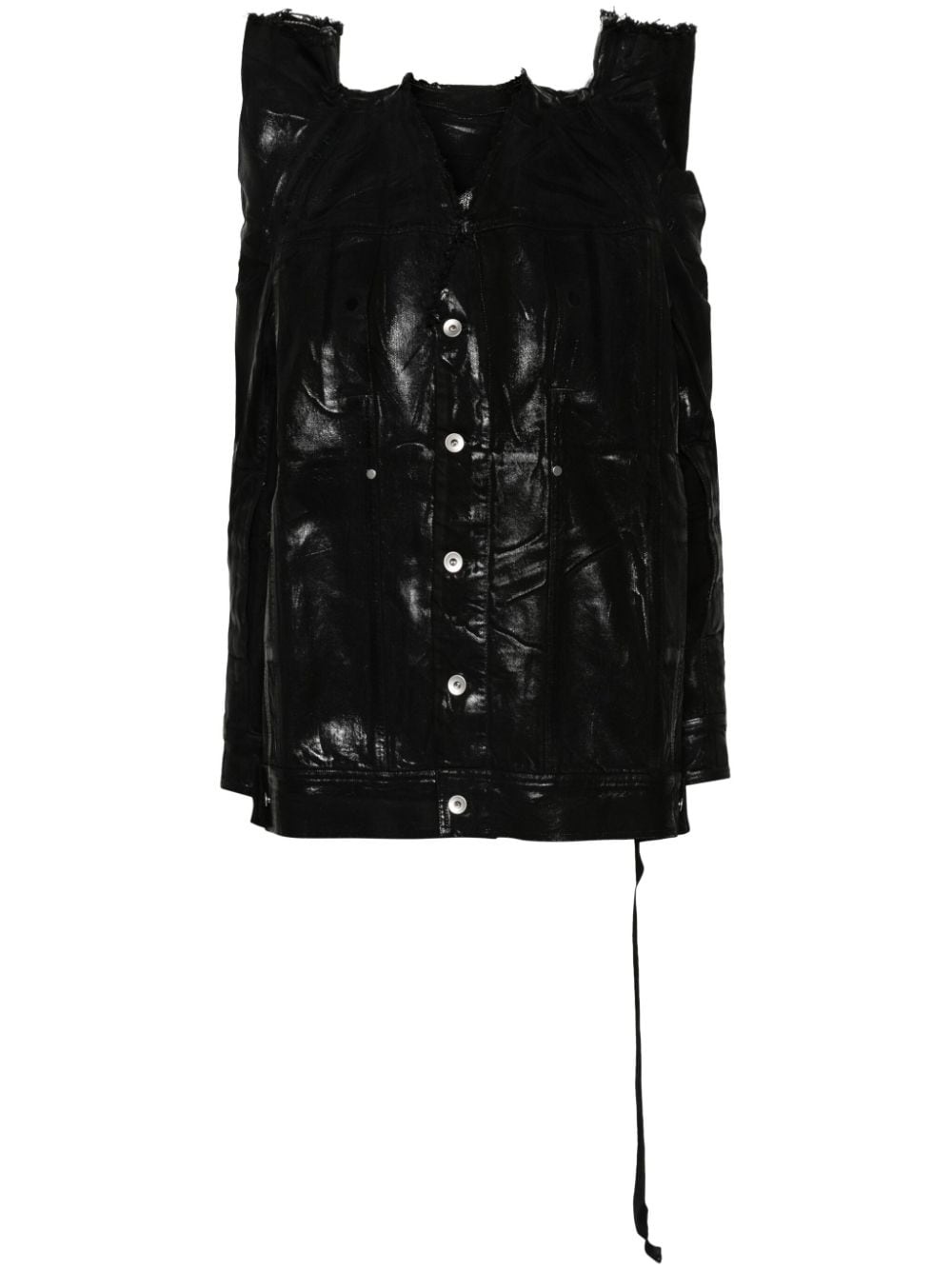 Tec Worker denim jacket Highlights - Black - Cotton - Denim - Coated finish - Crinkled finish - Raw-cut edge - V-neck - Oversize shoulders with cut-out detail - Extra-long sleeves - Buttoned cuffs - Two side inset pockets - Belted waist tabs - Unlined - Front button fastening Made in Italy Composition Cotton 100% Lining: Polyester 52%, Cotton 48% SIZE & FIT Model measurements Height 5 ft 11 in(1.8 m) Bust/Chest 33.07 in(84 cm) Hips 37.4 in(95 cm) Waist 25.19 in(64 cm) FittingInformation Designed to be unstructured, offering a loose fit throughout The adjustable tabs allow for fitted preferences Sturdy and hard-wearing, this denim piece offers no stretch This piece fits true to size – take your usual size