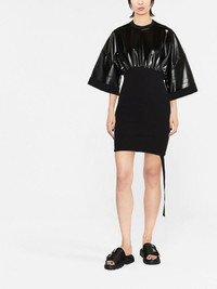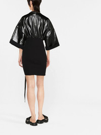 Tommy cinched-waist dress A modern understated silhouette defines this Rick Owens DRKSHDW dress, as is the signature of the brand. The wide sleeve top is balanced by the cinched waist that falls to a fitted skirt. Made in Italy Composition Outer: Cotton 67%, Polyurethane 33% Lining: Cotton 98%, Elastane 2% SIZE & FIT Model measurements Height 5 ft 11 in(1.8 m) Bust/Chest 31.49 in(80 cm) Hips 35.43 in(90 cm) Waist 25.19 in(64 cm) FittingInformation This piece fits true to size. We recommend you get your regular size Cut for a slim fit Made with a mid-weight stretch fabric Washing instructions Dry Clean Only