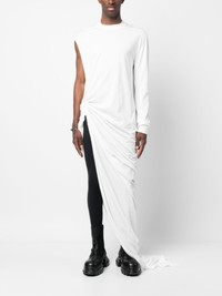 woven long-line T-shirt Highlights - Milk white - Cotton - Twist detailing - Round neck - Asymmetric sleeves - Long length - Asymmetric hem Made in Italy Composition Cotton 100% SIZE & FIT Model measurements Height 6 ft 0 in(1.84 m) Bust/Chest 36.22 in(92 cm) Hips 35.43 in(90 cm) Waist 26.77 in(68 cm) FittingInformation Designed for a slim fit, offering a comfortable fit that sits just away from the body Made from a midweight non-stretch fabric, this piece offers minimal elasticity when worn This piece fits true to size – take your usual size Washing instructions Hand Wash