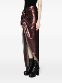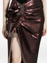 Edfu asymmetric sequinned maxi skirt Highlights - Auburn brown - Silk - Chiffon - Sequin design - Ruffled detailing - Gathered detailing - Wraparound style - Notched waistband - Off-centre front zip fastening - Asymmetric hem - Front thigh-high slit - Ankle-length Made in Italy Composition Polyester 100%, Silk 100% SIZE & FIT Model measurements Height 5 ft 10 in(1.78 m) Bust/Chest 29.13 in(74 cm) Hips 35.43 in(90 cm) Waist 23.62 in(60 cm) Measurement LENGTH 50.39 in(128 cm) WAIST 31.49 in(80 cm) HIPS 37 in(94 cm) FittingInformation Designed with an asymmetric hem, this skirt is intended to be worn just below the waist Made from a midweight non-stretch fabric This piece fits true to size – take your usual size Washing instructions Hand Wash