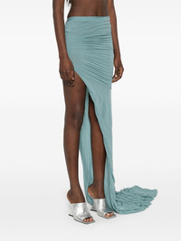 Edfu maxi skirt Highlights - Teal blue - Elasticated waistband - Side slit - Ruched detailing - Floor-length Made in Italy Composition Cupro 92%, Elastane 8% SIZE & FIT Model measurements Height 5 ft 11 in(1.8 m) Bust/Chest 32.67 in(83 cm) Hips 36.22 in(92 cm) Waist 24.4 in(62 cm) FittingInformation Designed with an asymmetric hem, this skirt is intended to be worn just below the waist The elasticated waist allows for a comfortable fit Made from a lightweight stretch fabric, this piece offers elasticity and flexibility when worn