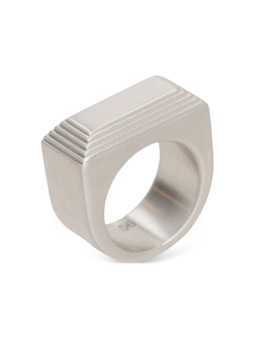 etched beveled ring Highlights - Silver-tone - Geometric body - Flat band Made in Italy