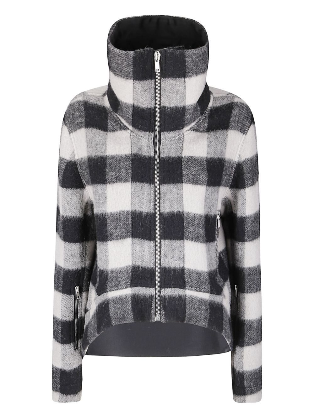 Exploder check zip-front jacket Highlights - Black - Check pattern - High neck - Zip fastening - Side zip pockets - Asymmetrical hem Imported Composition Wool 100% Washing instructions Read Manufacturer Guidelines