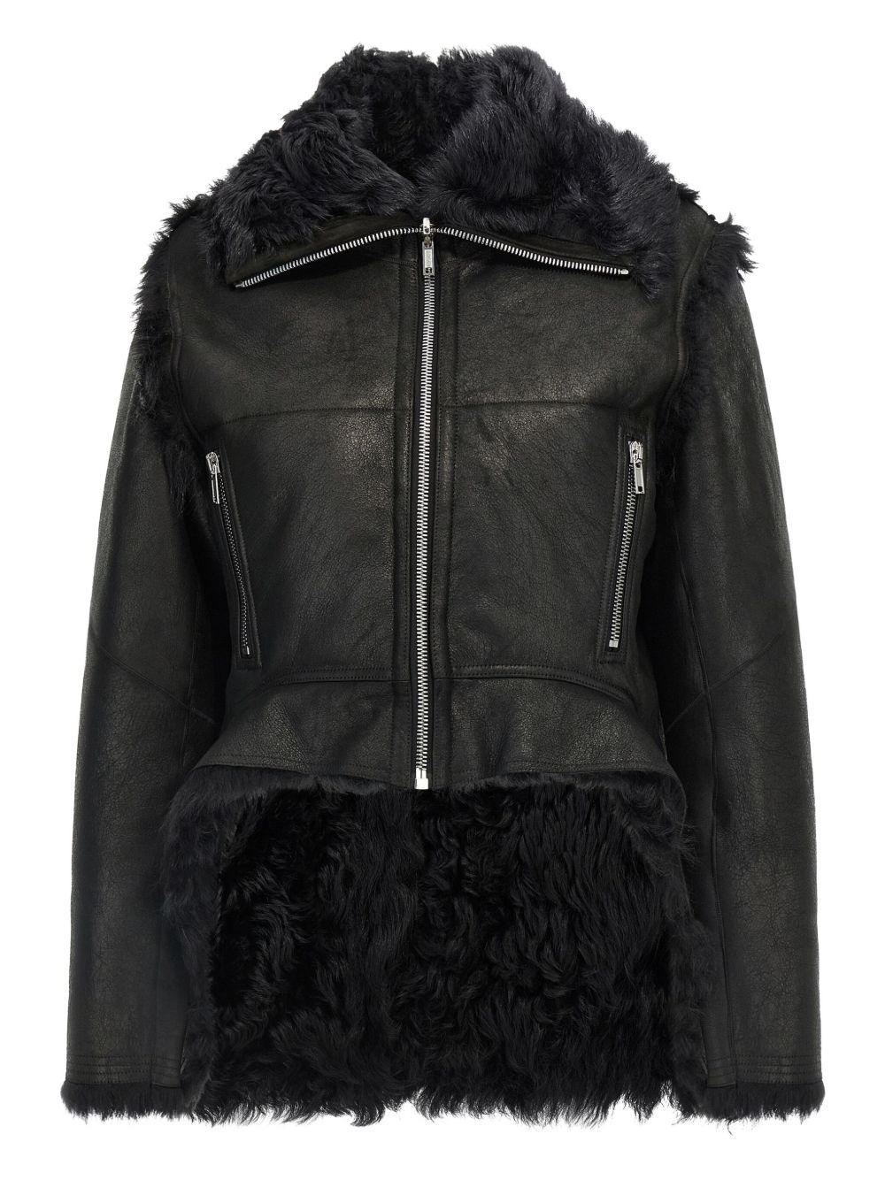 Exploder zip-front leather jacket Highlights - Black - Worked-effect leather - Zip front closure - High collar - Zip cuffs - Asymmetrical hem - Shearling detail Imported Composition Outer: Calf Leather 100% Lining: Wool 87%, Nylon 10%, Elastane 3% Washing instructions Read Manufacturer Guidelines