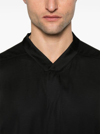 Faun shirt Highlights - Black - Concealed front press-stud fastening - Band collar - Drop shoulder - Press-stud fastening cuffs Made in Italy Composition Acetate 61%, Viscose 39% SIZE & FIT Model measurements Height 6 ft 2 in(1.87 m) Bust/Chest 37.79 in(96 cm) Hips 37.79 in(96 cm) Waist 30.31 in(77 cm) FittingInformation Designed to be unstructured, offering a loose fit throughout Made from a lightweight non-stretch fabric