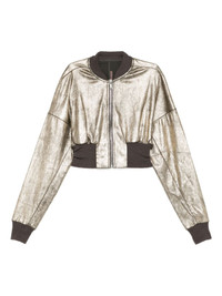 Flight jacket Highlights - Gold-tone - Front zip fastening - Ribbed hem - Long sleeves Made in Italy Composition Lamb Skin 65%, Cotton 34%, Lycra 1% SIZE & FIT Model measurements Height 5 ft 10 in(1.77 m) Bust/Chest 29.33 in(74.5 cm) Hips 32.28 in(82 cm) Waist 24.01 in(61 cm) FittingInformation Designed to be unstructured, offering a loose fit throughout The ribbed hem offers a close, comfortable fit Soft leather has a supple and smooth construction offering some flexibility Washing instructions Do Not Wash/Do Not Dry Clean