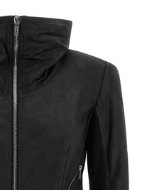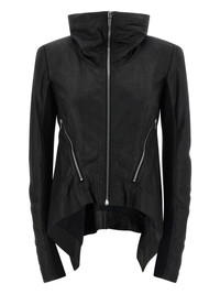 fold-neck zip-front leather jacket