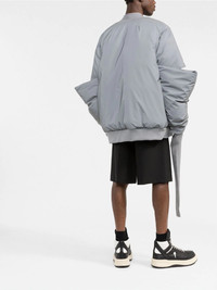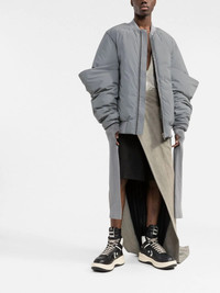 Gauntlet bomber jacket Renowned for his signature proportions, Rick Owens' contemporary take on a classic bomber jacket is seen here with oversized sleeves and elongated cuffs for an extra deconstructed look. Imported Composition Fabric 100% SIZE & FIT Model measurements Height 6 ft 1 in(1.86 m) Bust/Chest 32.67 in(83 cm) Hips 34.25 in(87 cm) Waist 25.19 in(64 cm) FittingInformation This piece fits true to size. We recommend you get your regular size Cut for an oversized fit Made with a mid-weight non-stretch fabric Washing instructions Dry Clean Only