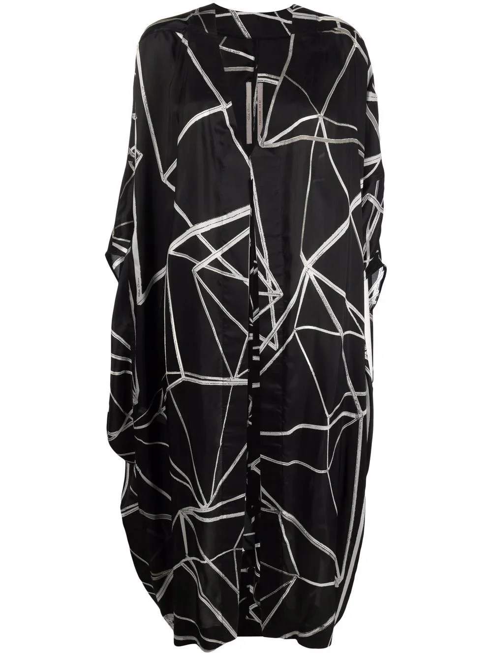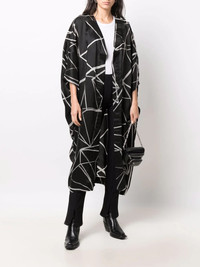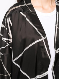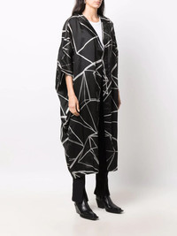 geometric-print V-neck coat black geometric print classic hood front zip fastening long sleeves Made in Italy Composition Cupro 100% SIZE & FIT Model measurements Height 5 ft 10 in(1.79 m) Bust/Chest 33.07 in(84 cm) Hips 35.82 in(91 cm) Waist 24.01 in(61 cm) FittingInformation This piece fits true to size. We recommend you get your regular size Cut for a loose fit Made with a lightweight non-stretch fabric Washing instructions Dry Clean Only