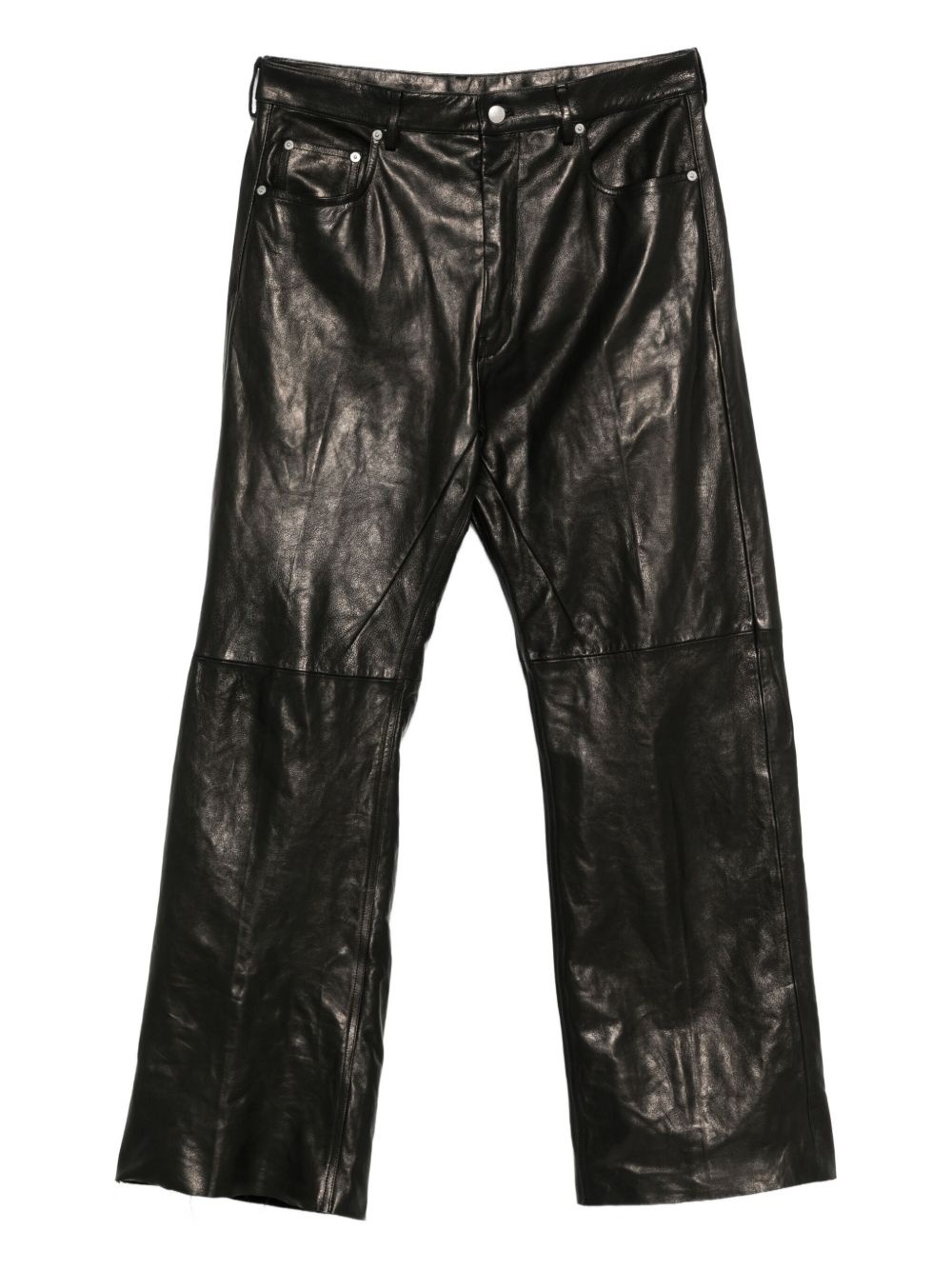 Geth trousers Highlights - Black - Concealed front fastening - Classic five pockets - Belt loops Imported Composition Outer: Lamb Skin 100% Lining: Cotton 100% SIZE & FIT Model measurements Height 6 ft 2 in(1.87 m) Bust/Chest 37.79 in(96 cm) Hips 37.79 in(96 cm) Waist 30.31 in(77 cm) FittingInformation Designed with a wide leg, offering a loose and roomy fit Soft leather has a supple and smooth construction offering some flexibility Washing instructions Specialist Cleaning