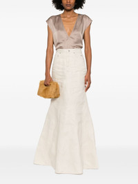 godet maxi skirt Highlights - Light beige - Concealed fly and button fastening - Classic five pockets - Demi-train - Raw-cut hem Made in Italy Composition Linen/Flax 100% SIZE & FIT Model measurements Height 5 ft 11 in(1.8 m) Bust/Chest 32.67 in(83 cm) Hips 35.82 in(91 cm) Waist 25.98 in(66 cm) FittingInformation This maxi-length skirt is intended to be worn high on the waist Particularly long in length; consider your own measurements Made from a midweight non-stretch fabric
