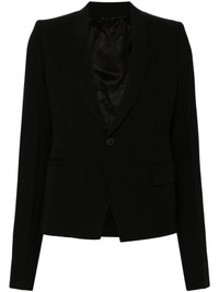 grain de poudre blazer Highlights - Black - Virgin wool - Grain de poudre - Peak lapels - Shoulder pads - Long sleeves - Buttoned cuffs - Two side flap pockets - American rear vent - Internal jetted pockets - Full lining - Front button fastening Made in Italy Composition Lining: Cupro 100%, Cotton 100% Outer: Virgin Wool 100%, Buffalo Horn 100% SIZE & FIT Model measurements Height 5 ft 9 in(1.76 m) Bust/Chest 31.88 in(81 cm) Hips 35.43 in(90 cm) Waist 24.8 in(63 cm) FittingInformation Designed for a slim fit that sits just away from the body offering a close yet comfortable fit The internal shoulder pads offer a structured shape Made from a midweight non-stretch fabric This piece fits true to size – take your usual size