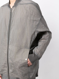 grid-patterned zipped bomber jacket Highlights - Taupe grey - Lightweight - Grid pattern - Ribbed band collar - Front zip fastening - Long sleeves - Two side button-fastening pockets - Ribbed cuffs and hem Made in Italy Composition Polyamide 97%, Polyurethane 3% SIZE & FIT Model measurements Height 6 ft 2 in(1.87 m) Bust/Chest 34.25 in(87 cm) Hips 36.22 in(92 cm) Waist 29.52 in(75 cm) Measurement CHEST 60.62 in(154 cm) SLEEVE LENGTH 34.64 in(88 cm) WAIST 52.75 in(134 cm) FittingInformation Designed for an oversized fit, offering additional room throughout Made from a midweight non-stretch fabric This piece fits true to size – take your usual size