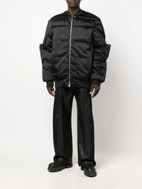 Gridered goose-down bomber jacket Highlights - Black - Recycled polyamide - Goose down - Satin finish - Quilted - Baseball collar - Front zip fastening - Long sleeves - Straight hem Made in Italy Composition Lining: Cupro 100%, Goose Down 100% Outer: Recycled Polyamide 100% SIZE & FIT Model measurements Height 6 ft 2 in(1.87 m) Bust/Chest 36.41 in(92.5 cm) Hips 37 in(94 cm) Waist 29.52 in(75 cm) FittingInformation This piece fits true to size. We recommend you get your regular size Cut for a loose fit Made with a mid-weight non-stretch fabric Washing instructions Dry Clean Only