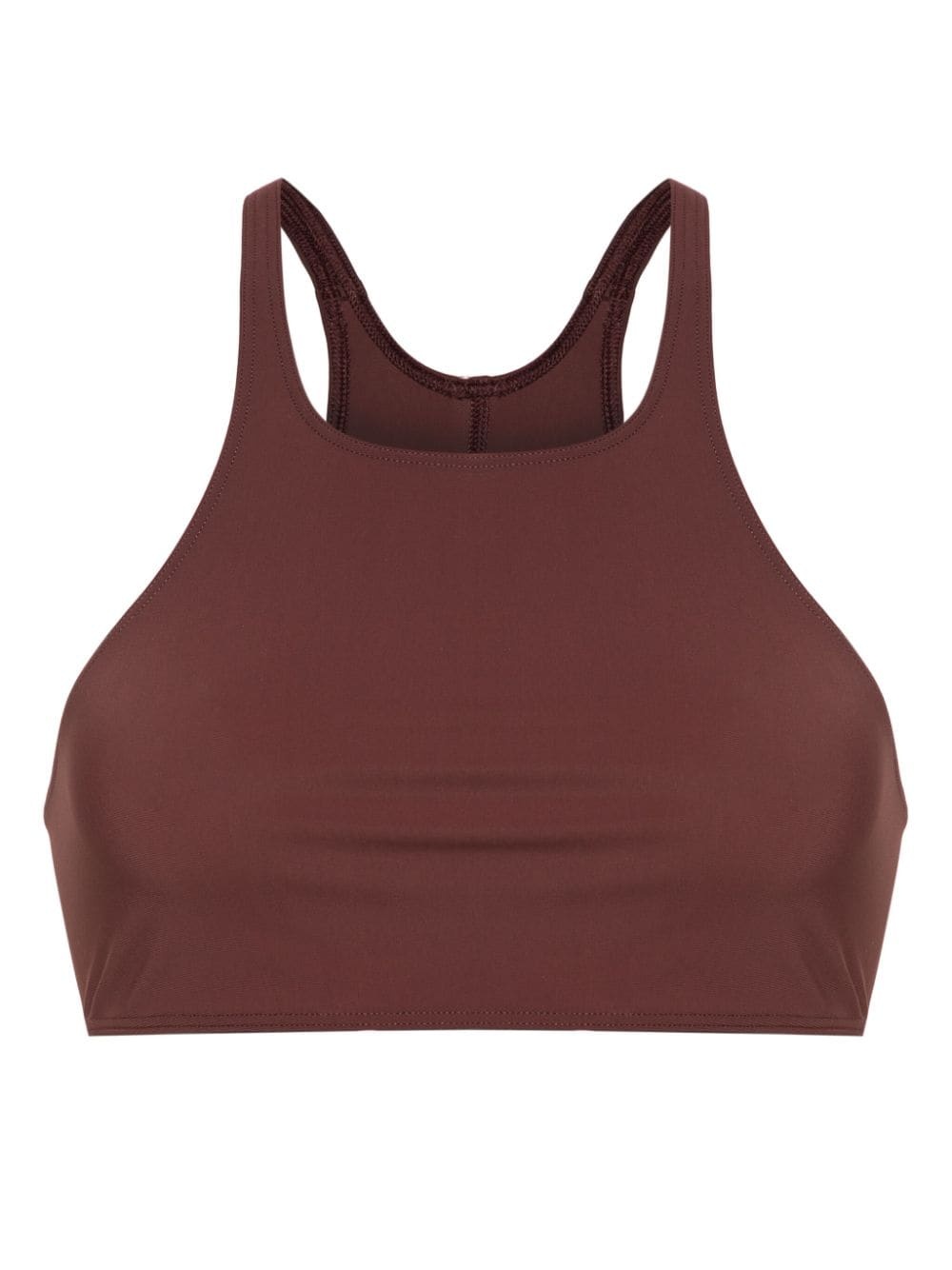 halterneck bikini top Highlights - Tobacco brown - Stretch-design - Uv protection - Chlorine resistance - Matte effect - Halterneck - Thin straps - Racerback - Slip-on style - Be mindful to try on swimwear over your own garments. Made in Italy Composition Polyamide 73%, Elastane 27% Washing instructions Hand Wash