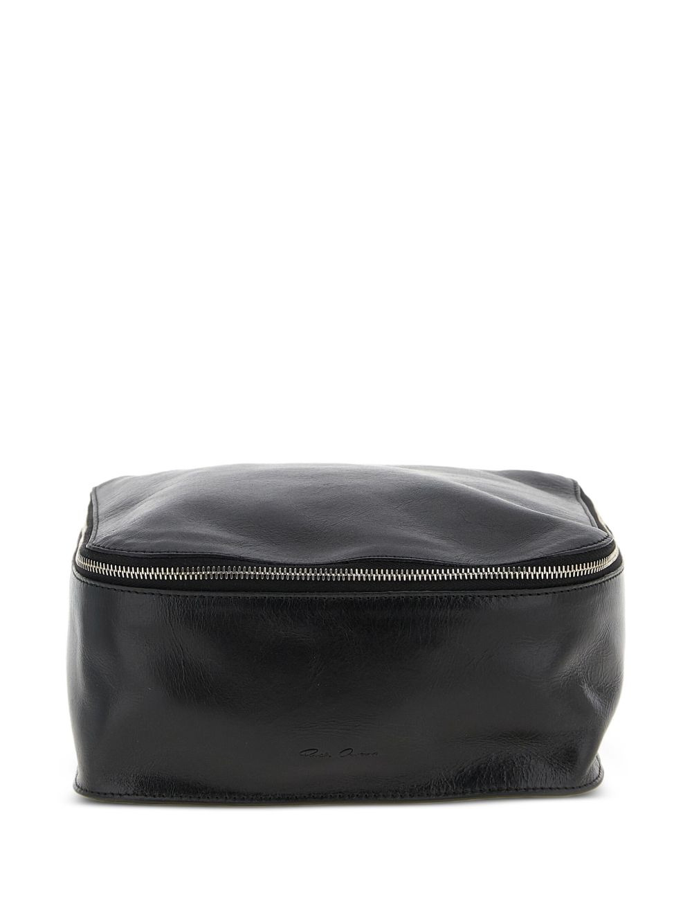 hammered-leather zip wash bag Highlights - Black - Hammered leather - Engraved logo - Zip closure - Wide handle - Rectangular shape - Large size Made in Italy Composition Outer: Calf Leather 100%, Steel 100% SIZE & FIT Measurement DEPTH 3.74 in(9.5 cm) HEIGHT 8.26 in(21 cm) WIDTH 8.26 in(21 cm)