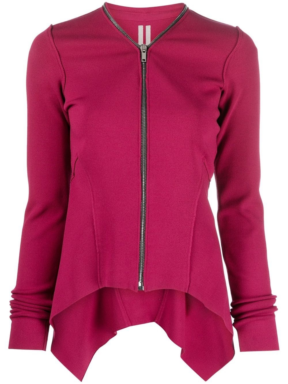 handkerchief-hem zip-up jacket fuchsia pink stretch-jersey V-neck front zip fastening long sleeves handkerchief hem Made in Italy Composition Viscose 63%, Polyester 27%, Polyamide 7%, Elastane 3% SIZE & FIT Model measurements Height 5 ft 10 in(1.79 m) Bust/Chest 33.07 in(84 cm) Hips 35.82 in(91 cm) Waist 24.01 in(61 cm) FittingInformation This piece fits small – you might want to get one size up Cut for a slim fit Made with a mid-weight fabric Washing instructions Dry Clean Only
