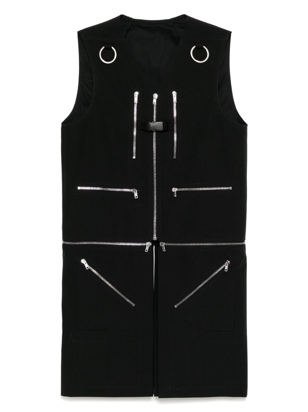 Headon waistcoat Highlights - Black - Front zip fastening - Two zip-fastening chest pockets - Two rear zip-fastening pockets - Front zip fastening pockets Made in Italy Composition Outer: Recycled Polyester 70%, Cotton 30% Lining: Cotton 100% SIZE & FIT Model measurements Height 5 ft 9 in(1.76 m) Bust/Chest 30.7 in(78 cm) Hips 33.46 in(85 cm) Waist 24.4 in(62 cm) FittingInformation Designed to be unstructured, offering a loose fit throughout The detachable panel offers the preference for a different fit Made from a midweight non-stretch fabric