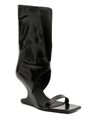 high heel sandals Highlights - Black - Open square toe - Slip-on style Made in Italy Composition Sole: Calf Leather 50%, Rubber 50% Outer: Goat Skin 100% Lining: Calf Leather 100% SIZE & FIT Measurement HEEL 3.14 in(8 cm)