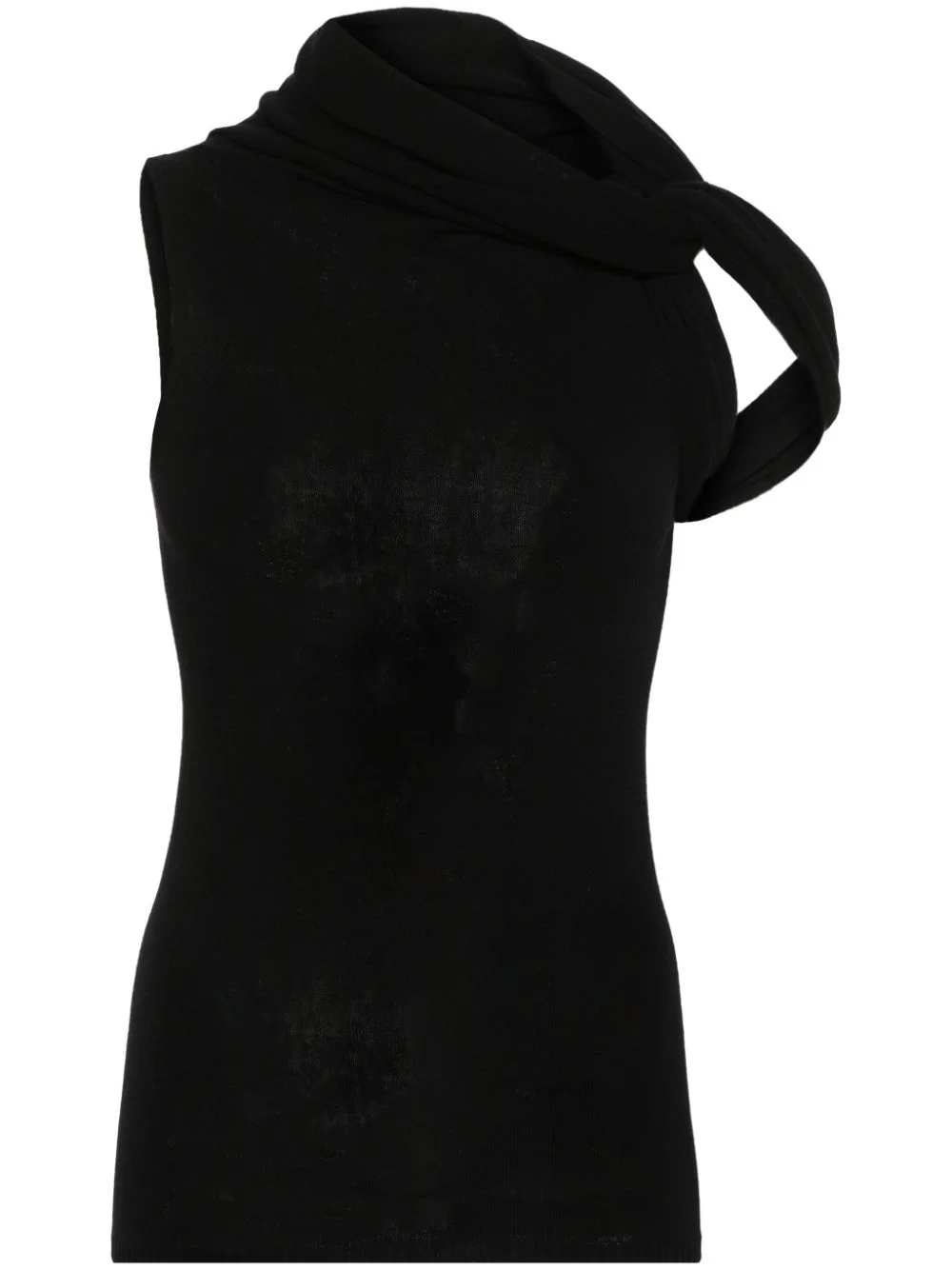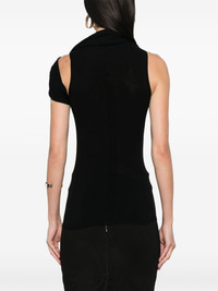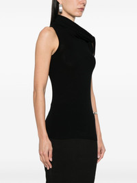 high-neck knitted top Highlights - Black - Knitted construction - Fine knit - Twist detailing - High neck - Sleeveless - Straight hem Made in Italy Composition Viscose 68%, Polyester 32% SIZE & FIT Model measurements Height 5 ft 10 in(1.78 m) Bust/Chest 33.46 in(85 cm) Hips 36.22 in(92 cm) Waist 23.22 in(59 cm) Measurement LENGTH 34.64 in(88 cm) WAIST 29.92 in(76 cm) FittingInformation Designed for a close fit throughout Made with a lightweight knit, this piece offers some stretch This piece fits true to size – take your usual size