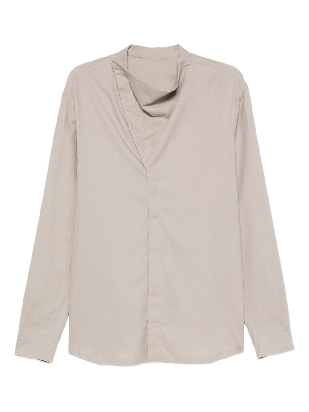 high-neck long-sleeve shirt Highlights - Light beige - High neck - Long sleeves - Press stud fastening Made in Italy Composition Organic Cotton 81%, RWS Wool 19% SIZE & FIT Model measurements Height 6 ft 1 in(1.85 m) Bust/Chest 35.82 in(91 cm) Hips 37.79 in(96 cm) Waist 29.13 in(74 cm) Washing instructions Hand Wash