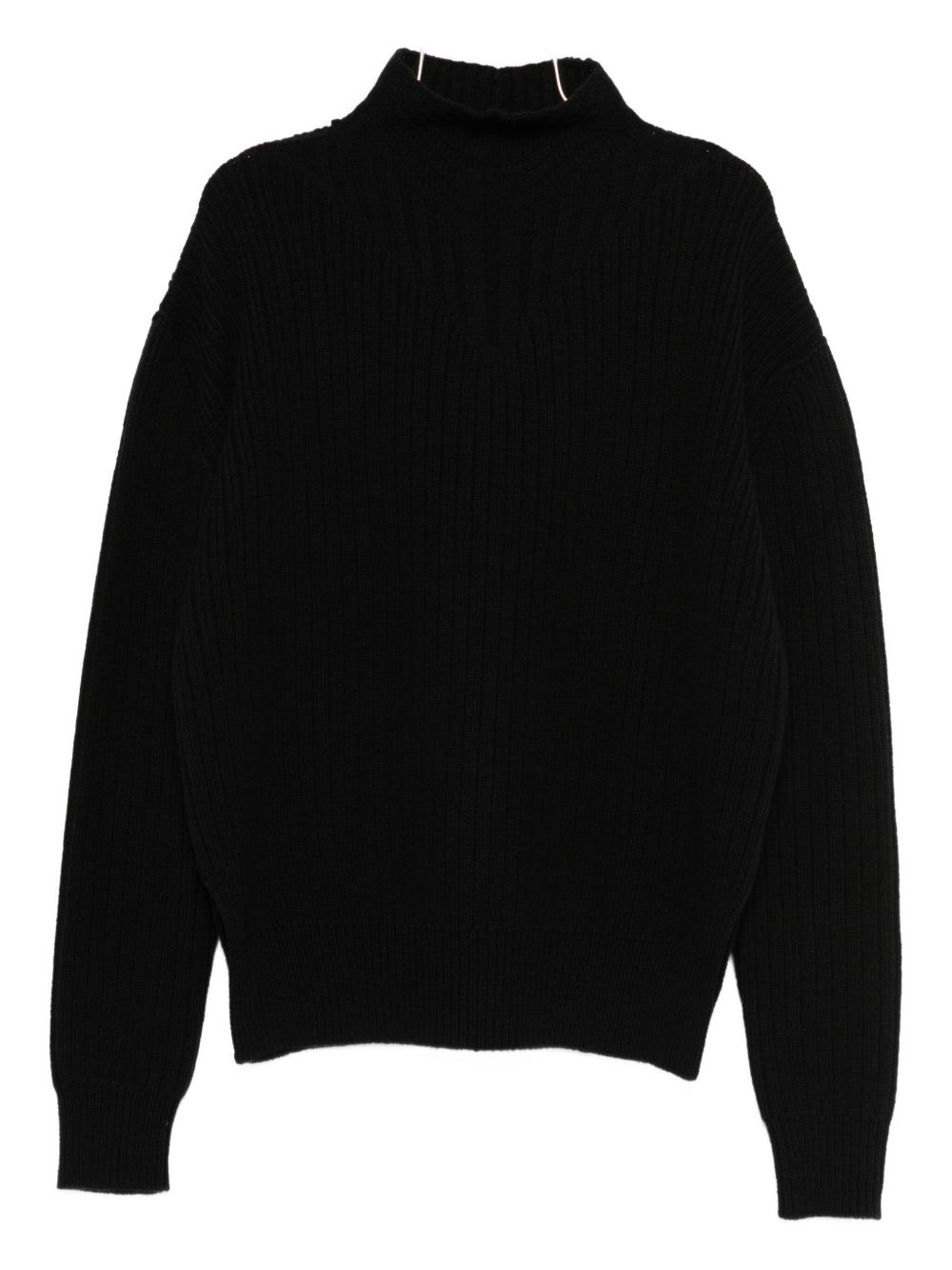 high-neck sweater Highlights - Black - High neck - Long sleeves - Straight hem Made in Italy Composition Virgin Wool 100% SIZE & FIT FittingInformation Designed to be unstructured, offering a loose fit throughout Made with a midweight knit, this piece offers some stretch Washing instructions Hand Wash