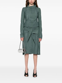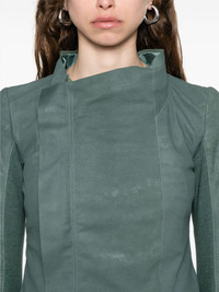 Hollywood biker jacket Highlights - Sage green - Concealed front zip fastening - Funnel neck - Long sleeves - Internal jetted pockets Imported Composition Lining: Cupro 100% Outer: Lambskin 100% SIZE & FIT Model measurements Height 5 ft 10 in(1.79 m) Bust/Chest 35.43 in(90 cm) Hips 35.03 in(89 cm) Waist 25.19 in(64 cm) FittingInformation Designed for a slim fit that sits just away from the body offering a close yet comfortable fit Soft leather has a supple and smooth construction offering some flexibility