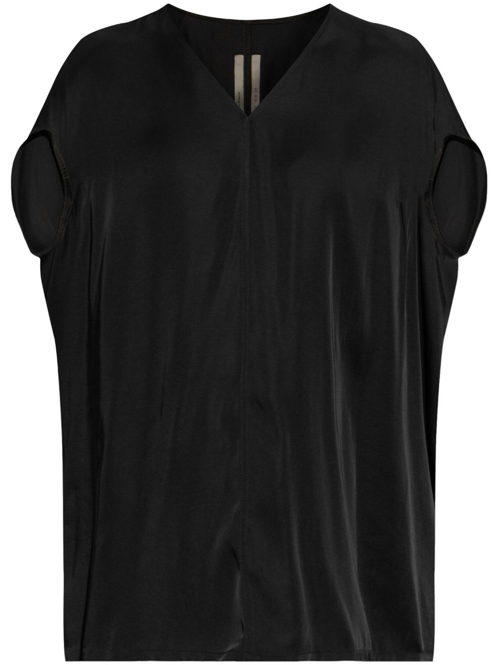 Hollywood blouse Highlights - Black - V-neck - Short sleeves - Pleat detailing - Asymmetric hem Made in Italy Composition Viscose 100% SIZE & FIT FittingInformation Designed to be unstructured, offering a loose fit throughout Made from a lightweight non-stretch fabric