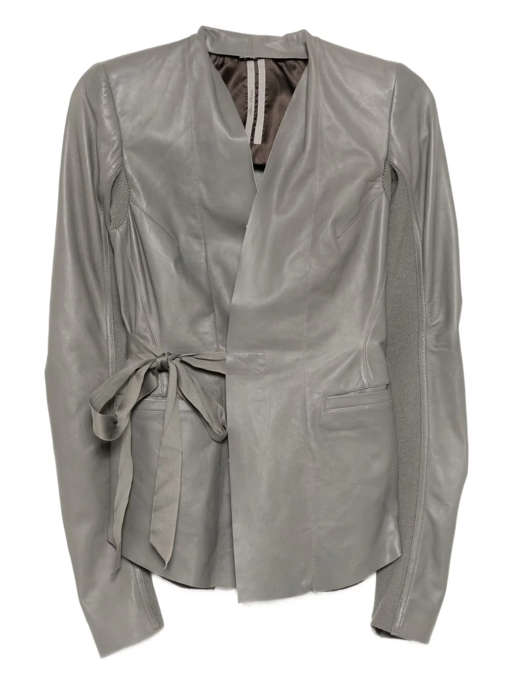 Hollywood jacket Highlights - Stone grey - Front tie fastening - Two side welt pockets - Long sleeves Imported Composition Lambskin 100% SIZE & FIT Model measurements Height 5 ft 10 in(1.77 m) Bust/Chest 29.33 in(74.5 cm) Hips 32.28 in(82 cm) Waist 24.01 in(61 cm) FittingInformation Designed for a slim fit that sits just away from the body offering a close yet comfortable fit The tie fastening gives an adaptable and personalised fit Soft leather has a supple and smooth construction offering some flexibility Washing instructions Do Not Wash/Do Not Dry Clean