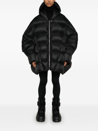 Hooded Peter puffer jacket Highlights - Black - Padded design - Quilted - Front press-stud and zip fastening - Slouchy hood - Drop shoulder - Long sleeves - Two side inset pockets - Full lining - Straight hem Made in Italy Composition Lining: Cotton 100%, Goose Down 90%, Goose Feather 10% Outer: Recycled Polyamide 100%, Virgin Wool 100% SIZE & FIT Model measurements Height 6 ft 2 in(1.87 m) Bust/Chest 38.18 in(97 cm) Hips 36.61 in(93 cm) Waist 29.13 in(74 cm) FittingInformation Designed for an oversized fit, offering additional room throughout Made from a padded non-stretch fabric, giving it no natural elasticity This piece fits true to size – take your usual size