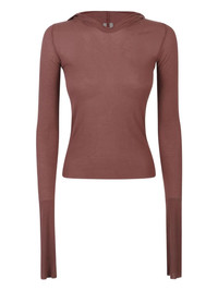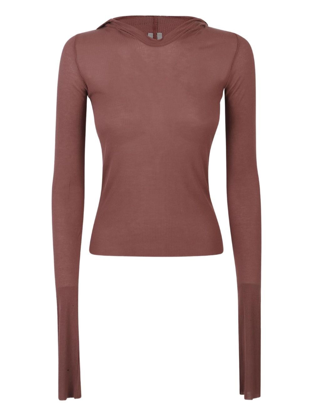hooded rib top Highlights - Brown - Ribbed knit - Long sleeves - Hood Made in Italy Composition Viscose 88%, Silk 12% Washing instructions Read Manufacturer Guidelines