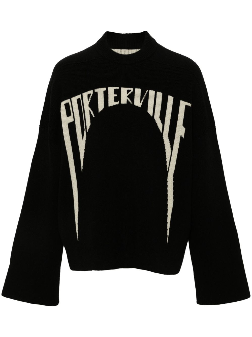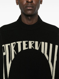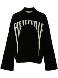 intarsia-knit sweater Highlights - Black/white - Virgin wool - Knitted construction - Intarsia-knit slogan - Crew neck - Drop shoulder - Long sleeves - Straight hem Made in Italy Composition Virgin Wool 100% SIZE & FIT Model measurements Height 6 ft 2 in(1.87 m) Bust/Chest 36.41 in(92.5 cm) Hips 37 in(94 cm) Waist 29.52 in(75 cm) FittingInformation Designed to be unstructured, offering a loose fit throughout Made with a midweight knit, this piece offers some stretch This piece fits true to size – take your usual size