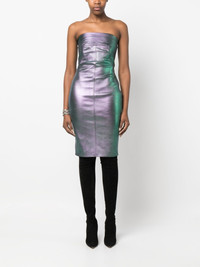 iridescent bustier minidress The multicolour iridescent finish of this Rick Owens bustier minidress lends it a futuristic feel. In contrast, the silhouette is comparatively classic: it's cut to a fitted, strapless design that falls to the knee. Highlights - Silver-tone - Lambskin - Metallic effect - Iridescent - Strapless - Bustier-style neckline - Knee-length - Exposed rear zip fastening Imported Composition Outer: Lamb Skin 65%, Cotton 34%, Lycra 1% Lining: Polyamide 78%, Elastane 22% SIZE & FIT Model measurements Height 5 ft 9 in(1.76 m) Bust/Chest 33.07 in(84 cm) Hips 38.58 in(98 cm) Waist 24.8 in(63 cm)