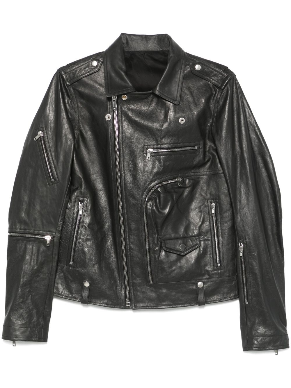 Jumbo Bauhaus Stooges biker jacket Highlights - Black - Off-centre front zip fastening - Cuff zips - Multiple zip-fastening pockets - Belt loops Made in Italy Composition Outer: Calf Leather 100% Lining: Cupro 100%