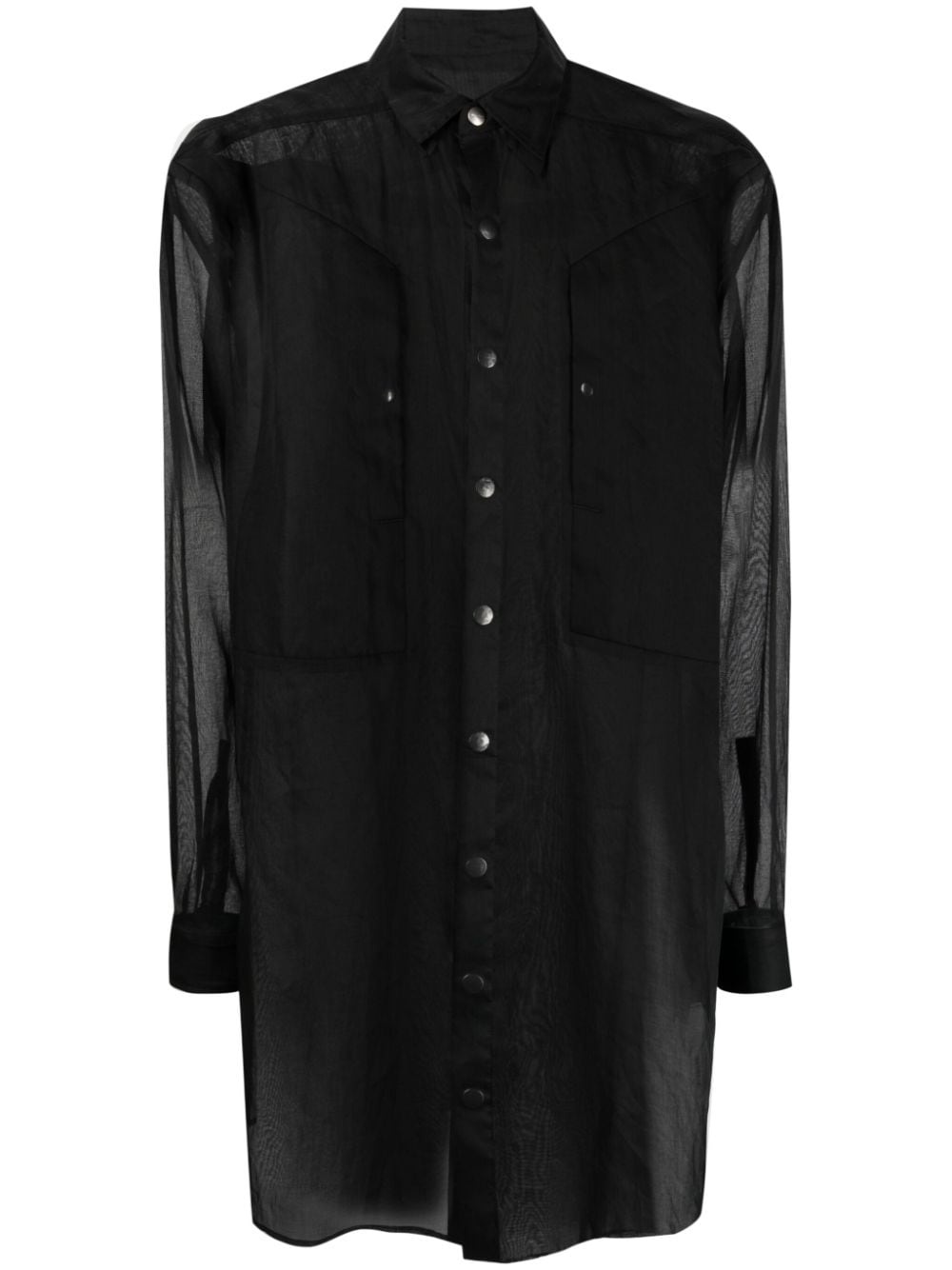 Jumbo Fogpocket semi-sheer shirt Highlights - Black - Cotton - Semi-sheer construction - Panelled design - Seam, strap and rivet detailing - Classic collar - Front press-stud fastening - Shirt sleeves - Two stud-fastening chest pockets - Rear curved hem Made in Italy Composition Cotton 100% SIZE & FIT Model measurements Height 6 ft 0 in(1.84 m) Bust/Chest 34.64 in(88 cm) Hips 35.03 in(89 cm) Waist 27.95 in(71 cm) FittingInformation Designed to be unstructured, offering a loose fit throughout Made from a lightweight non-stretch fabric This piece fits true to size – take your usual size