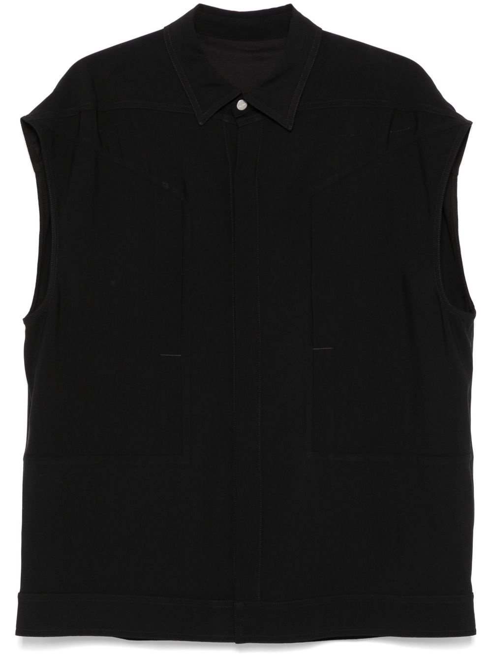 Jumbo shirt Highlights - Black - Concealed front press-stud fastening - Sleeveless - Waist tabs Made in Italy Composition Outer: Viscose 84%, Acetate 16% Lining: Cotton 100% SIZE & FIT Model measurements Height 6 ft 2 in(1.87 m) Bust/Chest 38.18 in(97 cm) Hips 36.61 in(93 cm) Waist 29.13 in(74 cm) FittingInformation Designed for a boxy fit, intended for a loose fit throughout Made from a midweight non-stretch fabric, this piece offers minimal elasticity when worn