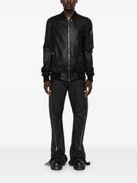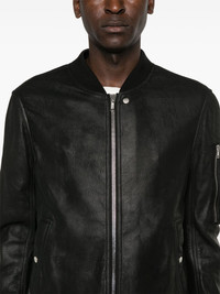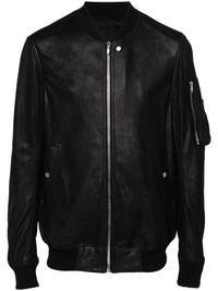 leather bomber jacket Highlights - Black - Lambskin - Baseball collar - Long sleeves - Zip-fastening pocket - Ribbed cuffs and hem - Two side welt pockets - Full lining - Front zip fastening Made in Italy Composition Outer: Virgin Wool 100%, Lamb Skin 100% Lining: Cotton 100%, Cupro 100% SIZE & FIT Model measurements Height 6 ft 2 in(1.87 m) Bust/Chest 36.41 in(92.5 cm) Hips 37 in(94 cm) Waist 29.52 in(75 cm) FittingInformation Designed for a regular fit, allowing for a comfortably loose fit throughout the body The ribbed hem offers a close, comfortable fit Soft leather has a supple and smooth construction offering some flexibility This piece fits true to size – take your usual size