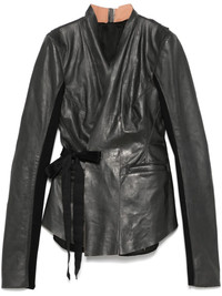 Hollywood grosgrain-trimmed leather wrap jacket Black