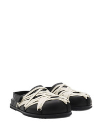 leather strap crisscross loafers Highlights - Black - Leather upper - Crisscross straps - Off-white straps - Buckle fastening - Flat sole Made in Italy Composition Outer: Calf Leather 100% Lining: Calf Leather 100% Sole: Calf Leather 100%