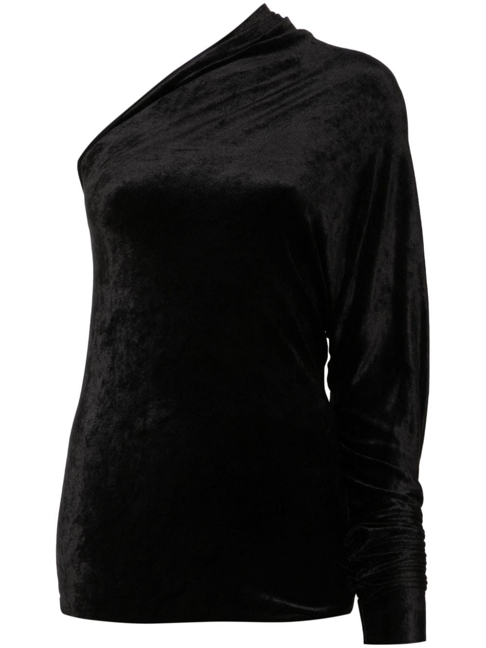 Diana top Highlights - Black - Fsc viscose blend - Velvet - Asymmetric neck - Single long sleeve - Draped detailing - Straight hem Made in Italy Composition FSC Viscose 83%, Polyamide 17% SIZE & FIT Model measurements Height 5 ft 11 in(1.8 m) Bust/Chest 33.07 in(84 cm) Hips 37.4 in(95 cm) Waist 25.19 in(64 cm) FittingInformation Designed for a slim fit that sits just away from the body offering a close yet comfortable fit Made from a midweight non-stretch fabric, this piece offers minimal elasticity when worn