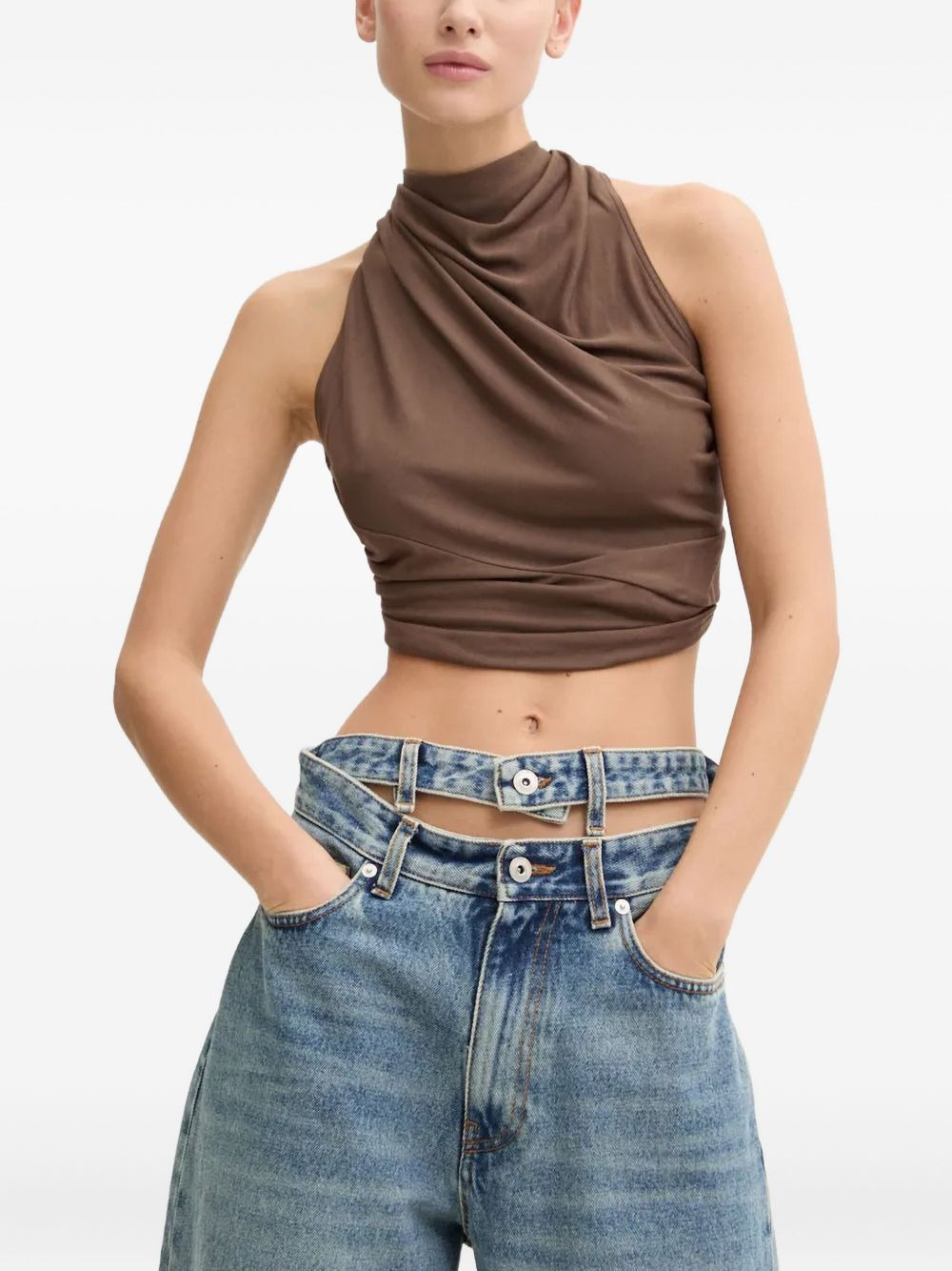 draped halter-neck top Highlights - Brown - Halter neck - Draped design - Sleeveless Made in Italy Composition Viscose 100% Washing instructions Read Manufacturer Guidelines
