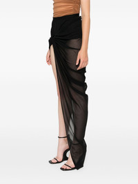 Edfu maxi skirt Highlights - Black - Recycled polyester - Semi-sheer construction - Elasticated waistband - Knot detailing - Gathered detailing - Draped detailing - Side slit - Asymmetric hem - Unlined Made in Italy Composition Recycled Polyester 100% SIZE & FIT Model measurements Height 5 ft 9 in(1.75 m) Bust/Chest 31.88 in(81 cm) Hips 34.64 in(88 cm) Waist 24.01 in(61 cm) FittingInformation Designed with an asymmetric hem, this skirt is intended to be worn high on the waist The elasticated waist allows for a comfortable fit Made from a lightweight non-stretch fabric, this piece offers minimal elasticity when worn This piece fits true to size – take your usual size